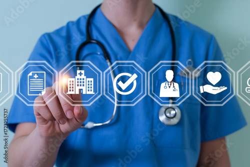 Healthcare technology concept doctor using digital interface for medical services and information access