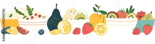 Healthy breakfast options, oatmeal and fruits, flat design illustration