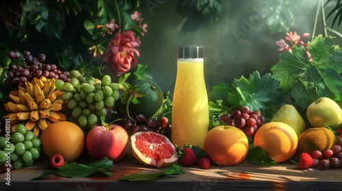 Healthy fresh fruits juice, drink. Vitamins, fitness drink, health food.