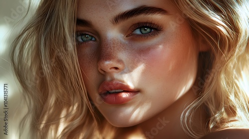 Healthy skin woman blonde white skin makeup beauty female model closeup.