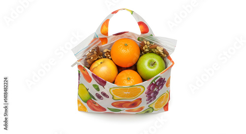 Healthy Snack Bag With Assorted Fruits Apples Oranges And Nutritious Walnuts