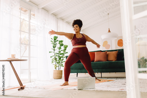 Healthy woman training at home