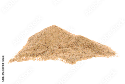 Heap of beach sand on white background. Closeup