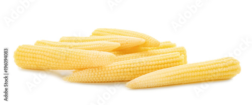 Heap of fresh young baby corn on white background