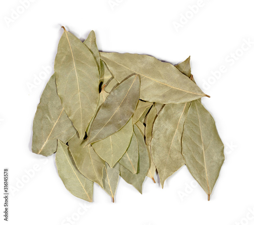heap of leaves of bay leaf isolated on a white background top view