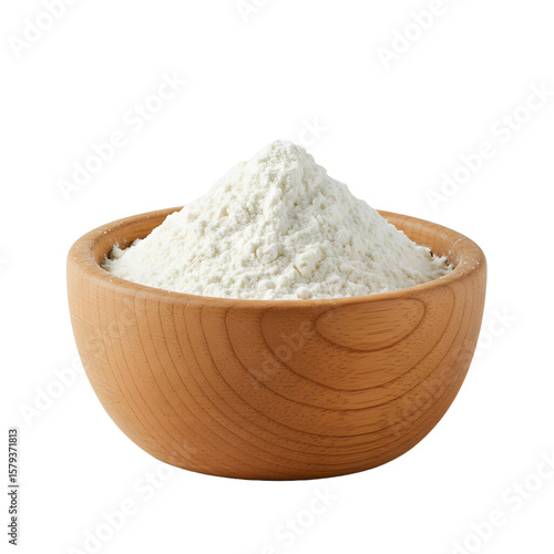 Heap of Wheat Flour in Wooden Bowl Isolated on White Background – Organic Baking Ingredient