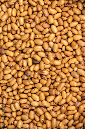 Heap of yellow haricot for background texture, close-up, top view, copy space for text