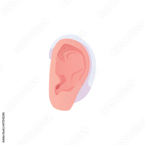 Hearing aid on the ear, vector illustration in flat style. Isolated in white.
