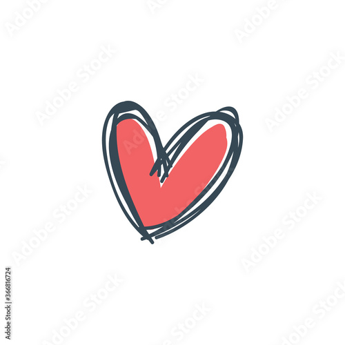 Heart doodle icon, symbol of love. Hand drawn illustration.