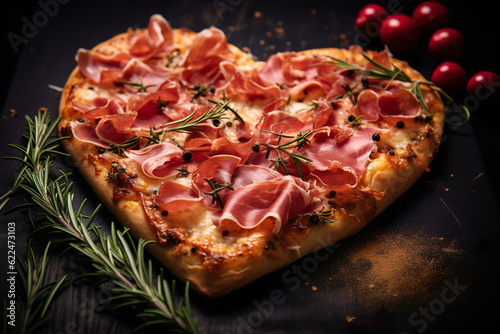 Heart pizza. Pizza with ham and rosemary | Generative AI