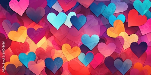 Hearts background, pencil drawing style, colorful