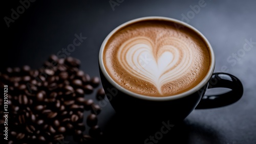 Heart-Shaped Latte Art in Cappuccino with Coffee Beans