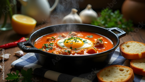 Hearty Homemade Tomato Soup with Egg and Herbs