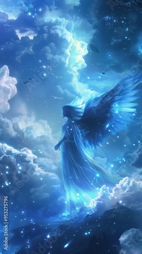 Heavenly Angels. Angelic beings in the sky
