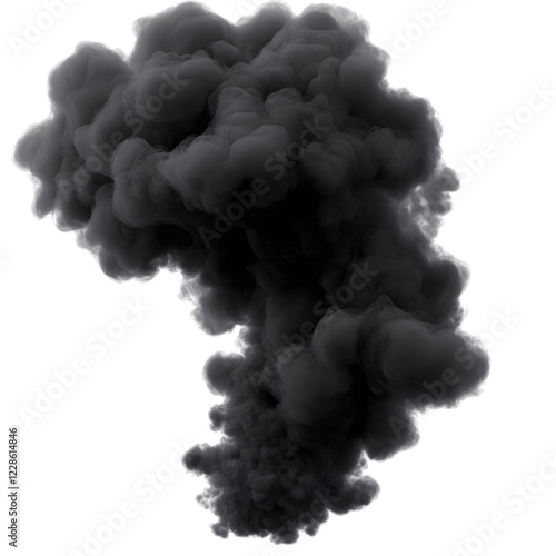 Heavy Dark Smoke Cloud with Floating Particles, Isolated on Transparent Background