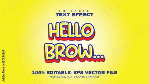 hello brow text effect design, cool with 3d design