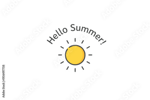 Hello summer text and sun draw, vector image illustration