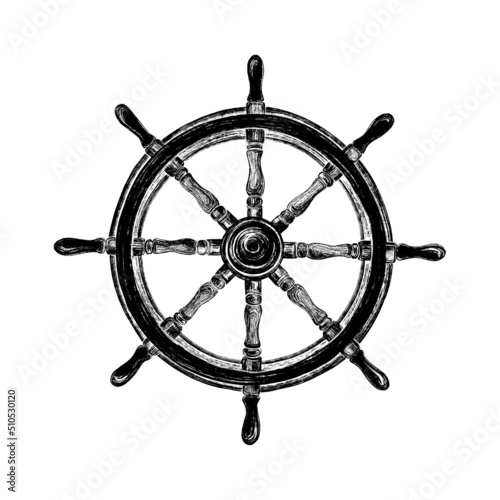 Helm drawn in black ink, paint and brush texture. Engraving style