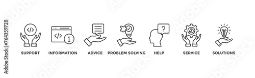 Help desk banner web icon vector illustration concept with icon of support, information, advice, problem solving, help, service and solutions