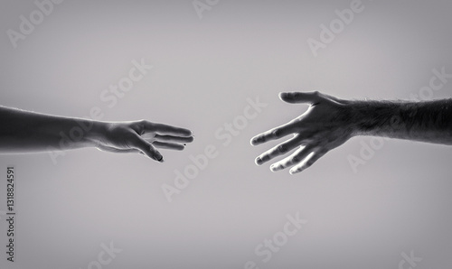 Helping hand concept, support. Two hands, helping arm of a friend, teamwork. Black and white