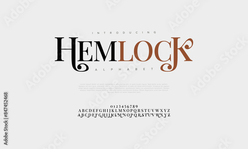 Hemlock premium luxury elegant alphabet letters and numbers. Vintage wedding typography classic serif font decorative vintage retro. creative vector illustration