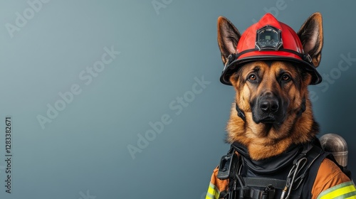 Heroic Dog in Firefighter Gear with Helmet and Safety Equipment