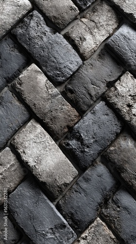 Herringbone pattern of dark gray bricks
