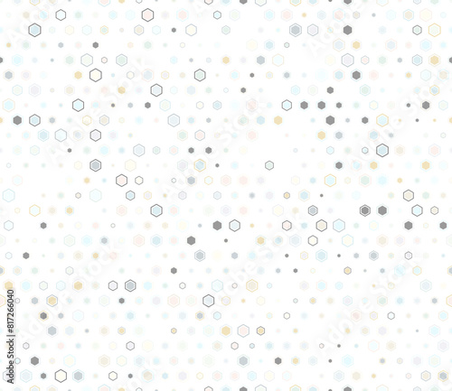 Hexagon background design. Multicolored geometric elements of varied size. Hexagon bold mosaic cell with padding and inner solid cells. Hexagon shapes. Tileable pattern. Seamless vector illustration.