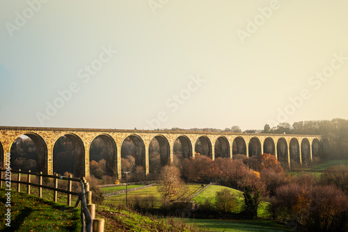 Hidden gem in Wales during Autumn - Ty Mawr Country Park. Trails are running beneath the Cefn Viaduct, past the banks of the River Dee and along the Cefn Heritage Trail, Wales, UK