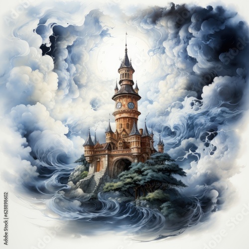Hidden Wizard s Tower in a Swirling Vortex Watercolor Clipart