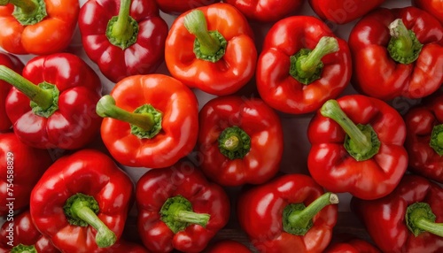 high quality photo . Full frame view from above abundance of vibrant shiny red bell peppers
