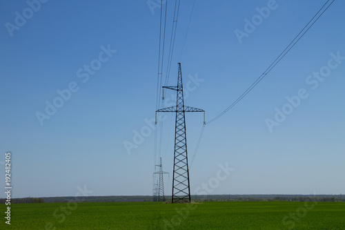 High voltage power line against blue sky