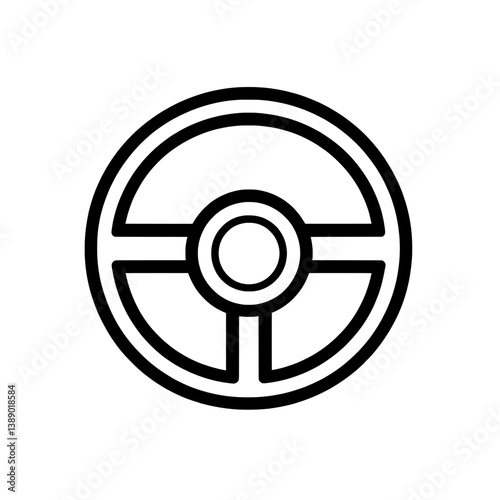 High-detail steering wheel icon in black and white with circular grip and inner control structure