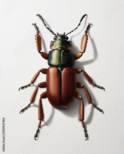 Highly Detailed Beetle on White Background, Top View, Perfect for Scientific and Artistic Uses
