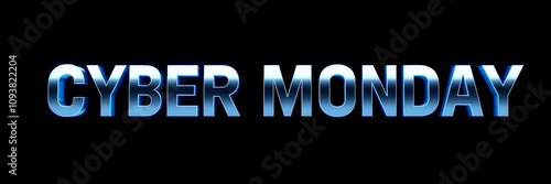 Highly realistic image of sleek blue and silver Cyber Monday text on dark backdrop, modern and high-tech feel, isolated on white background, copy space, realistic, modern