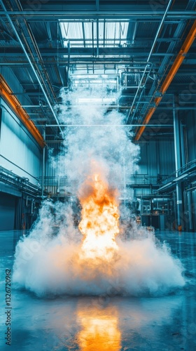 High-pressure vessel releasing superheated vapor industrial facility dramatic steam eruption high-temperature environment angled shot pressure dynamics
