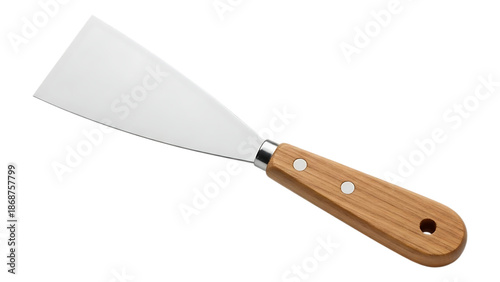 High-quality pastry scraper with wooden handle and stainless steel blade for baking and cooking on transparent background