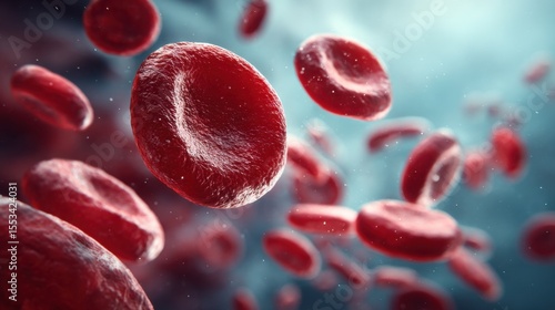 High-resolution 3D rendering of detailed red blood cells in dynamic flow