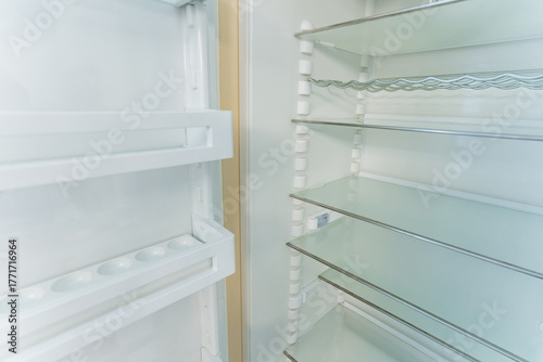 highresolution image showcasing refrigerator glass shelf with support rails and sleek modern design