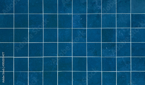 High-resolution texture of deep blue ceramic square tiles with clean white grout lines, perfect for modern interior design, bathroom wall backdrop, kitchen backsplash, or swimming pool background.