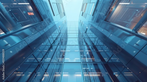 High-rise building with facial recognition elevators, exclusive, modern.