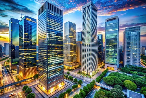 High-Rise Office Buildings In A Bustling City, Representing The Modern Corporate Landscape And The Power Of Business And Finance