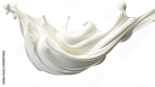 High-speed capture of milk splash, showing creamy texture and dynamic motion against a white background. Perfect for food and beverage concepts.