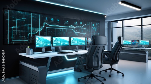 High-Tech Control Room with Multiple Monitoring Screens