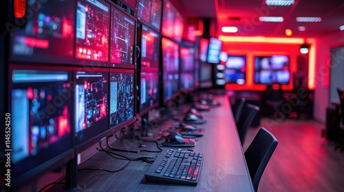 High-tech control room with multiple monitors.