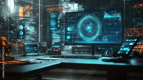 High-tech gadgets and devices on a modern desk, with a focus on cutting-edge technology.