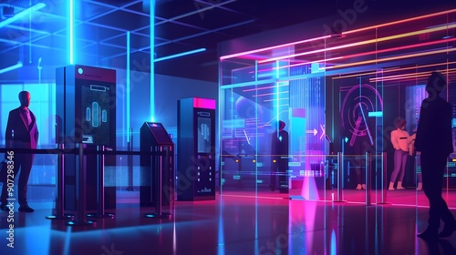 High-Tech Security Checkpoint with Digital Scanning and Biometric Verification