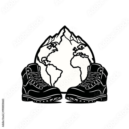 Hiking Boots with Globe Illustration.