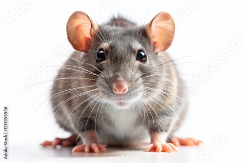 Hilarious Close-Up of a Tiny Rat Isolated on White Background - Funny Rodent Macro Photography