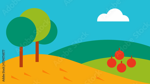 hill stylized orchard trees picnic blanket